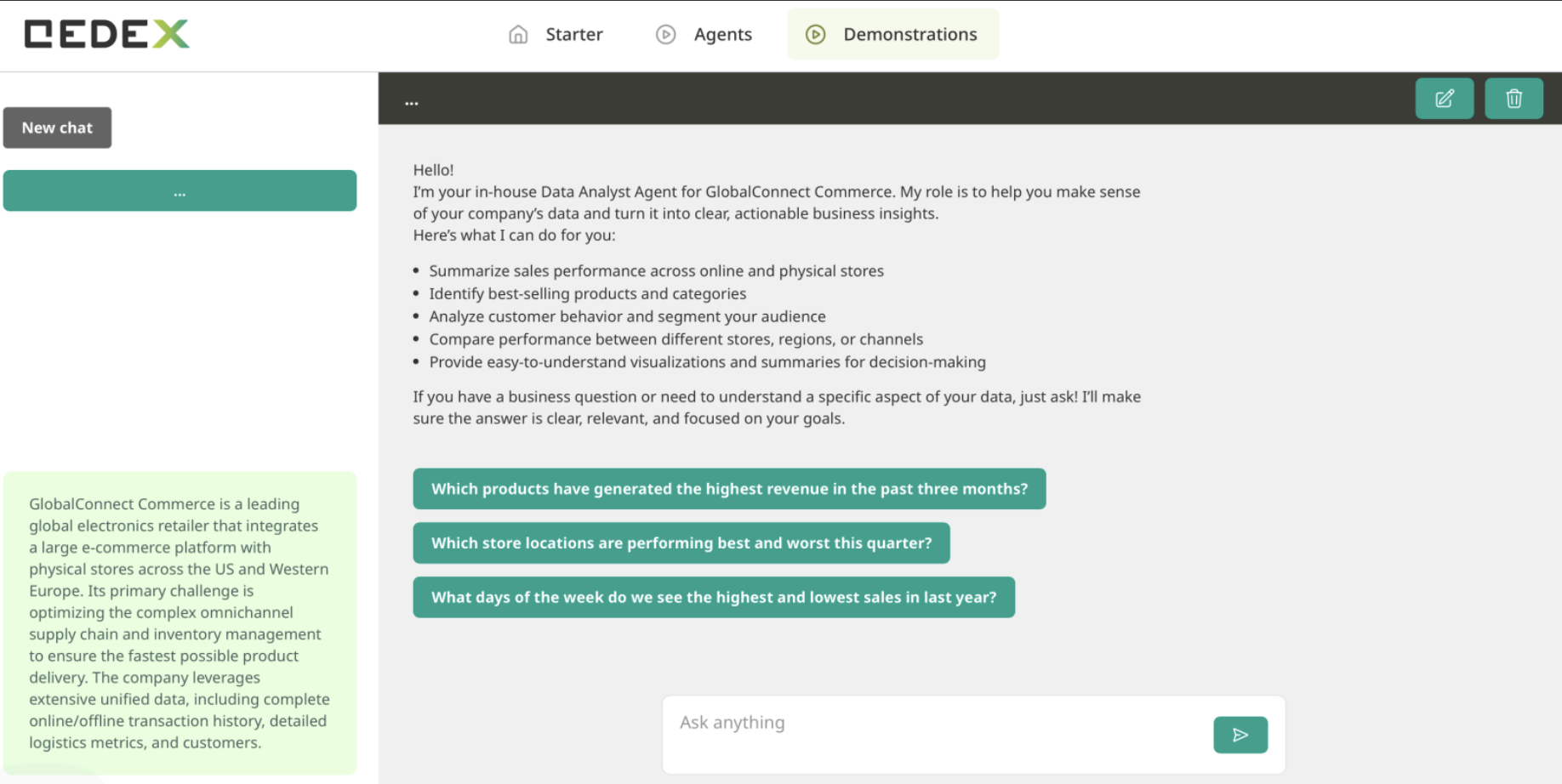 Before you dive into complex data mapping, demonstration section allows you to experience the full power of QEDEX in a controlled, "ready-to-go" environment. It is the perfect starting point to understand how our Agentic Technology can be translated into your business value.